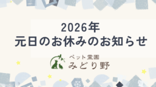 平素より「ペット霊園みどり野」をご利用いただき、心より感謝申し上げます。 誠に勝手ながら、弊社では年始を以下の通り休業とさせていただきます。 【休業日】2026年1月1日(木) 2日(金)より通常通りの営業を予定しております。お客様にはご不...